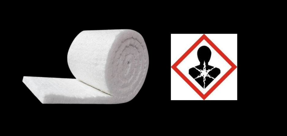 Refractory Ceramic Fibre Blanket (RCF) is typically made from Aluminium Silicate Fibre, spun and woven into blanket form. It has great insulating properties but can be hazardous to your health. If you've ever been in contact with it, you'll probably have seen the warning symbol above. It comes with a carcinogenic warning, meaning that inhalation may lead to fibrosis, lung cancer and other quite nasty stuff.