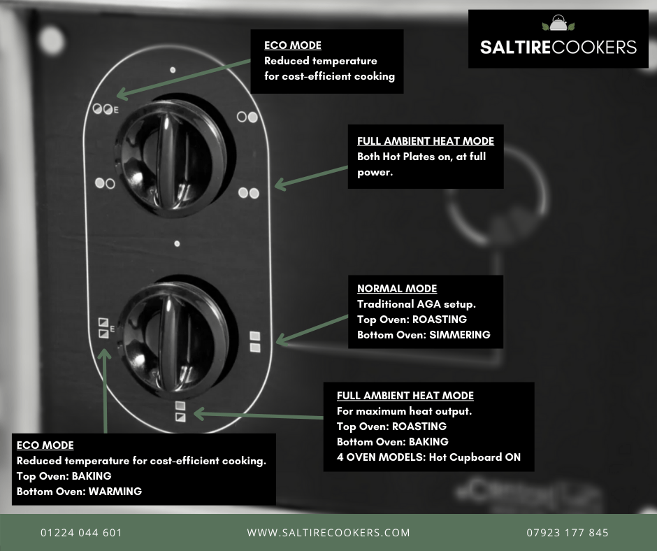 The control panel for the eControl system is shown, along with the rough temperatures for each setting. These temperatures are always a guide only and shouldn't be followed by the degree. As with any Aga Range Cooker, temperatures can vary and each cooker has its own character and idiosyncrasies.