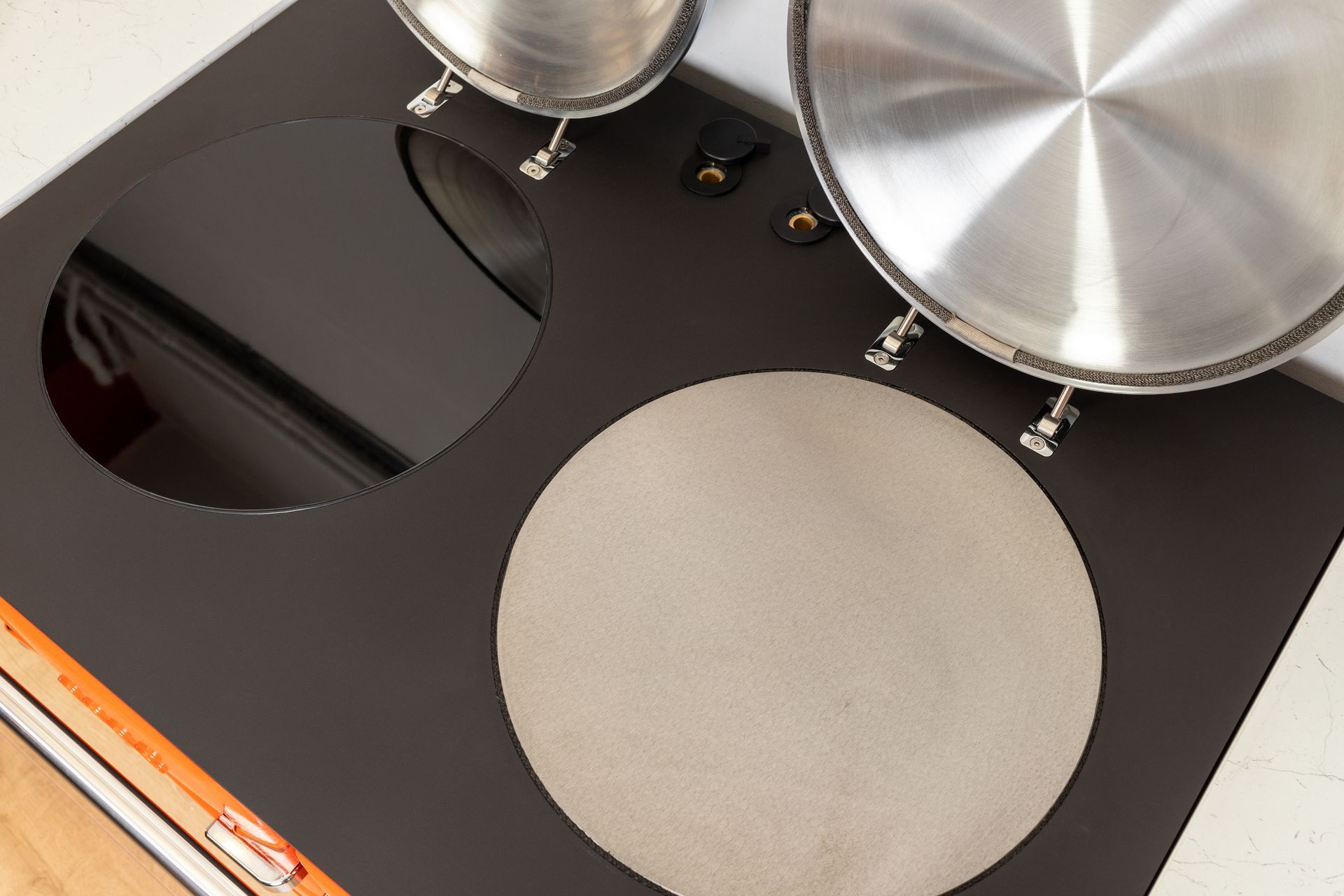 Two circular domed hotplate lids.