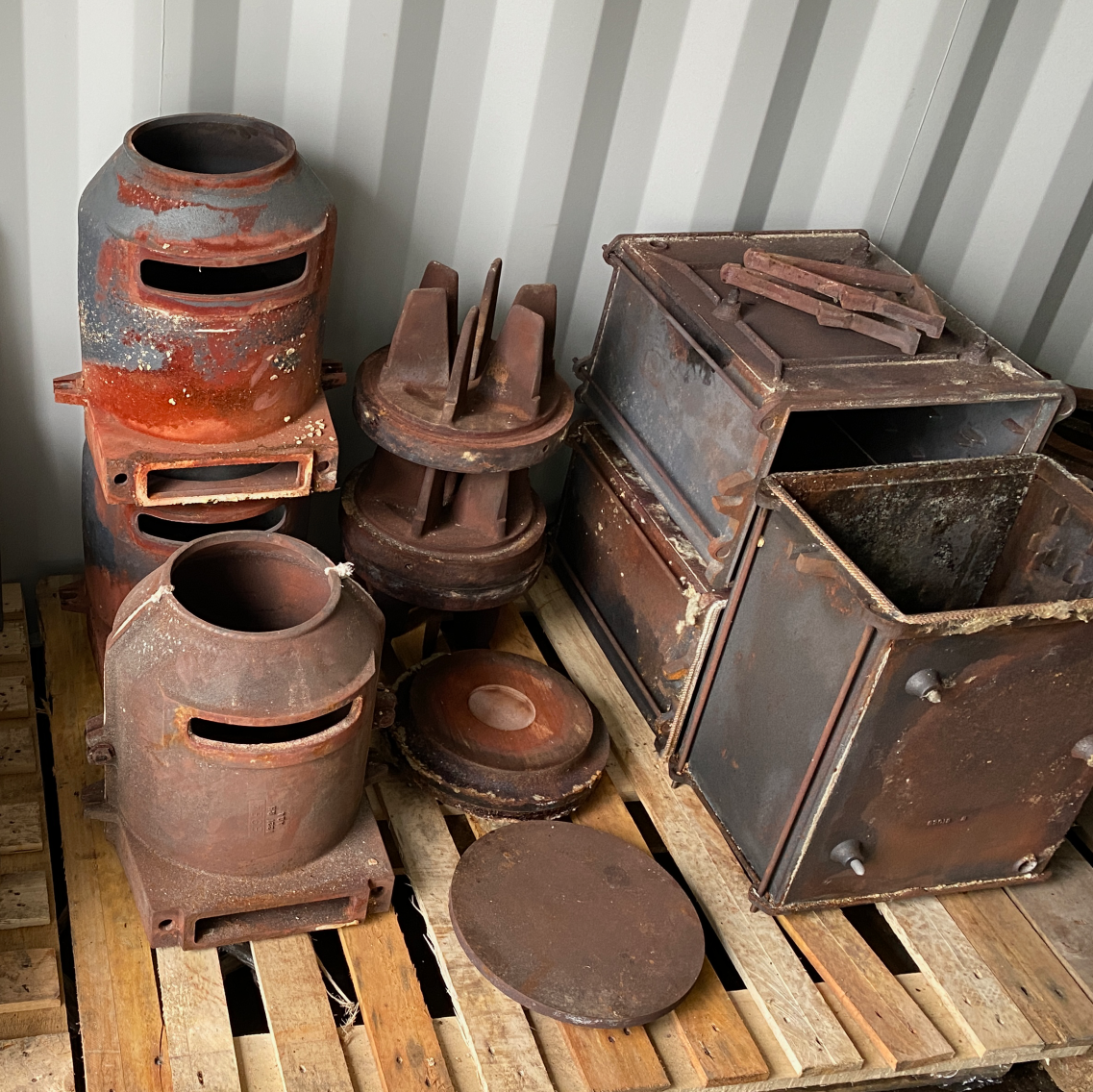 The old enamel is shot blasted off to reveal the bare cast iron. The cast iron is then coated in the Vitreous Enamel that Aga Cookers are known for. Vitreous Enamel is created by fusing coloured powder with substrate by hand, then firing the parts in huge furnaces. This process has been found to have been used as early as the 13th Century! There are even reports of the Titanic Captain's vitreous enamelled bathtub surviving its life underwater.