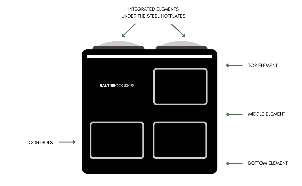 Both of the conversions keep the cast iron ovens aga cookers are known for. They both have individual elements placed above and below the ovens for even and quick heat distribution. We'll use our 2 oven models as an example for the below information.