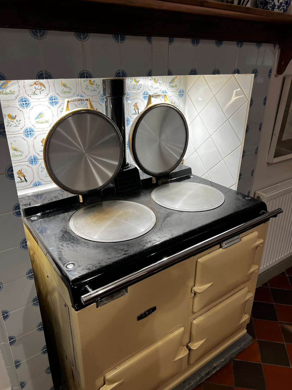 Inside their childhood home, this customer's Aga Cooker was originally made to run from solid fuel - easy to spot with the small aperture behind the control door (where the old 'fire door' would have sat) as well as the 'air wheel' at the top left of the front plate.