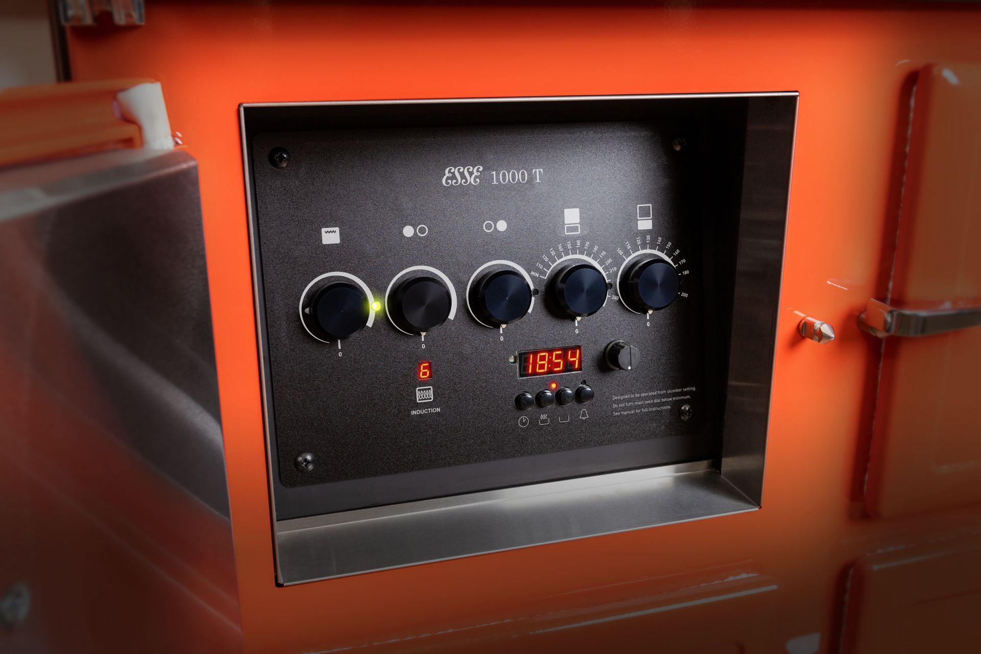 The Esse 1000T is designed to be left on at a very low slumber temperature. This slumber mode gives you roughly 85c in the top right hand oven and around 30c in the cast iron hotplate above. This slumber mode keeps the ovens saturated with a little heat for faster heat up times and reduced moisture build-up, but the thick insulation blankets around the ovens give you minimal ambient heat to the room when on slumber. You always have the option to run your ovens at a higher temperature 24/7 for increased room heat.